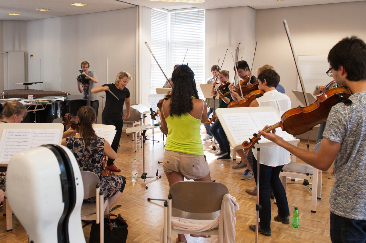 Die deutschen Musikbotschafter aus dem Raum Rhein-Main sind junge Musiker/innen der Kammerphilharmonie Frankfurt. Sie sind bekannt für ihre moderne Art, klassische Musik zu machen. Experimentierfreudig und mutig wie sie sind, spielen sie nicht nur in Konzertsälen, sondern geben auch mal in einem Einkaufscenter ein Benefizkonzert.KAMMERPHILHARMONIE FRANKFURTFotos Martin KämperProjektanfang I zurückweiter zur Welturaufführung