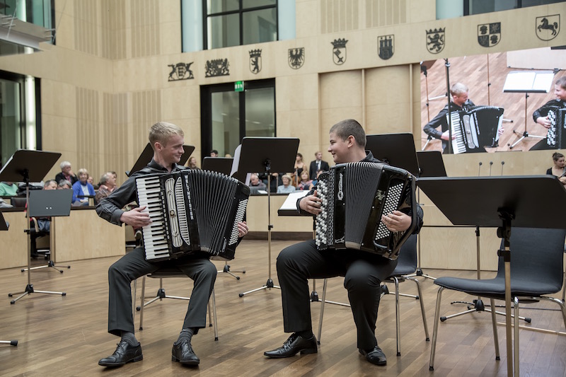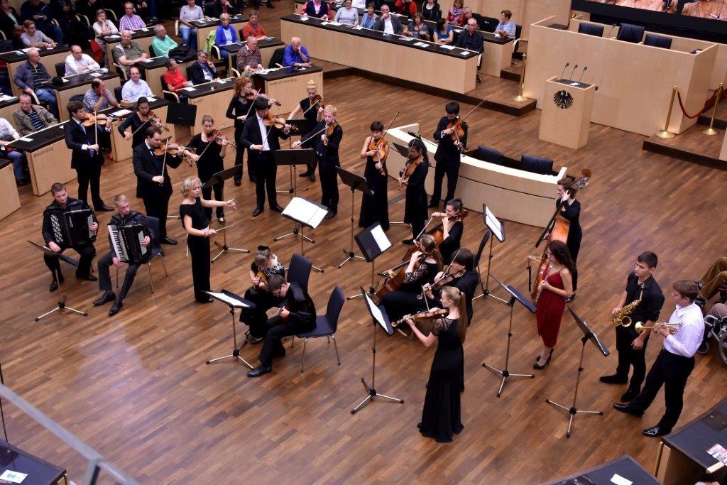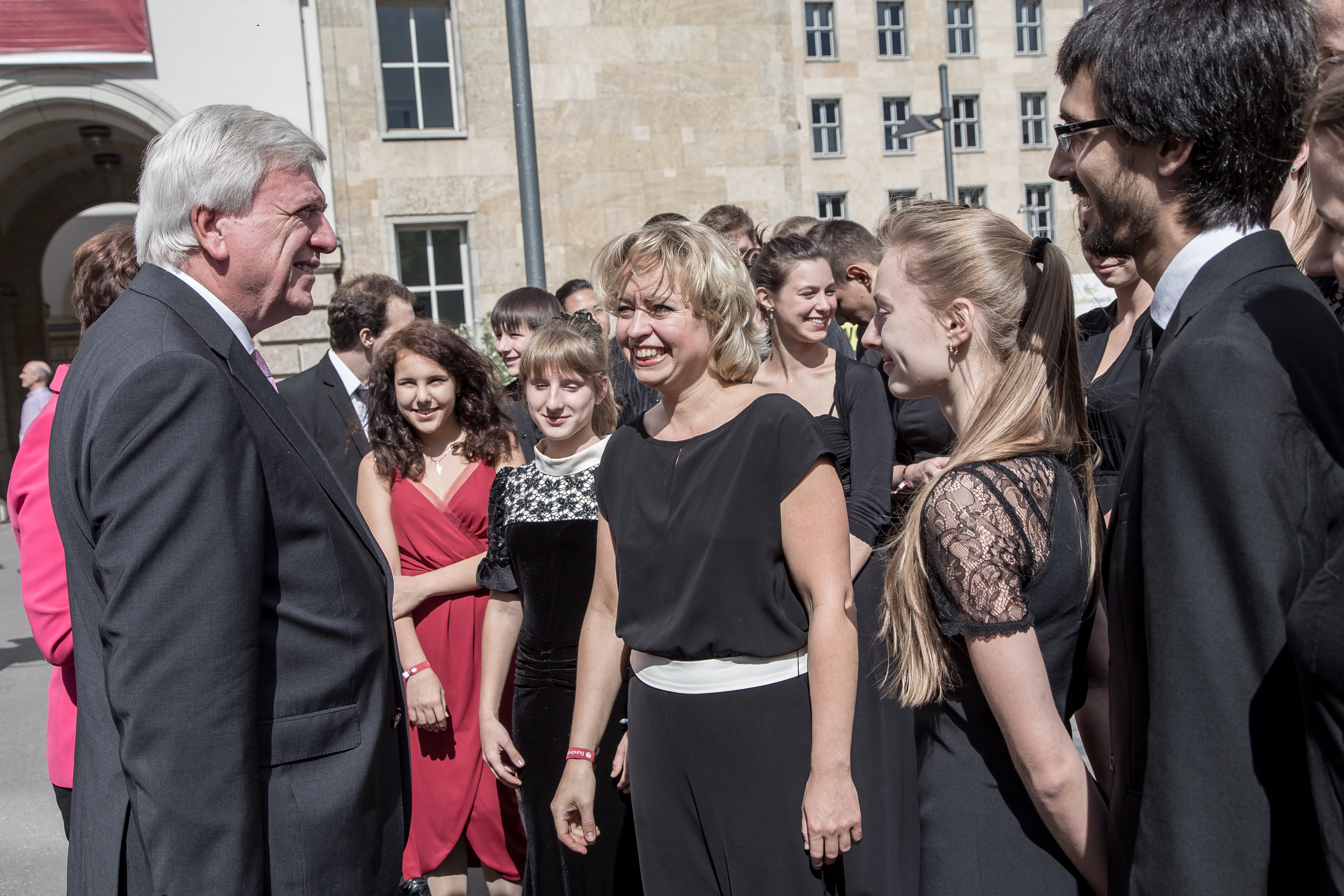 So schätze der Hessische Ministerpräsident Volker Bouffier das Jugend-Projekt so sehr, dass er die jungen Künstlerinnen und Künstler zum Tag der offenen Tür des Deutschan Bundesrates nach Berlin einlud, wo sie ihren Auftritt sichtlich genossen.