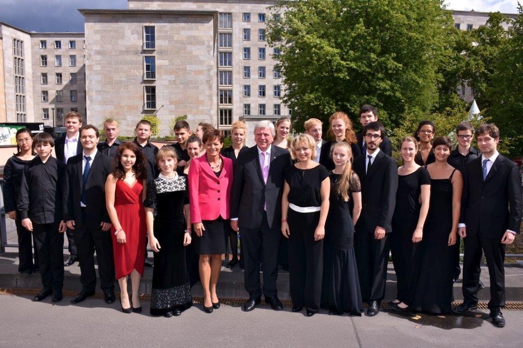 Anna Skryleva (Künstlerische Leiterin) und Teilnehmer/innen mit dem Hessischen Ministerpräsidenten Volker Bouffier beim Tag der offenen Tür im Bundesrat Berlin.